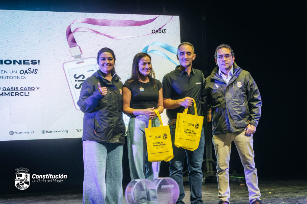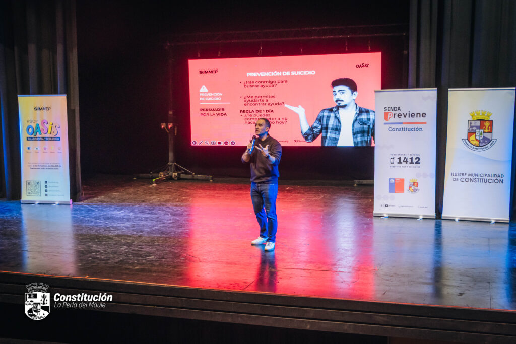 Con una alta convocatoria y un Teatro Municipal repleto, se desarrolló en Constitución una significativa jornada del programa “Oasis”, iniciativa impulsada por la Fundación Summer en conjunto con SENDA Previene, orientada a promover la salud mental y la prevención en jóvenes de la comuna.